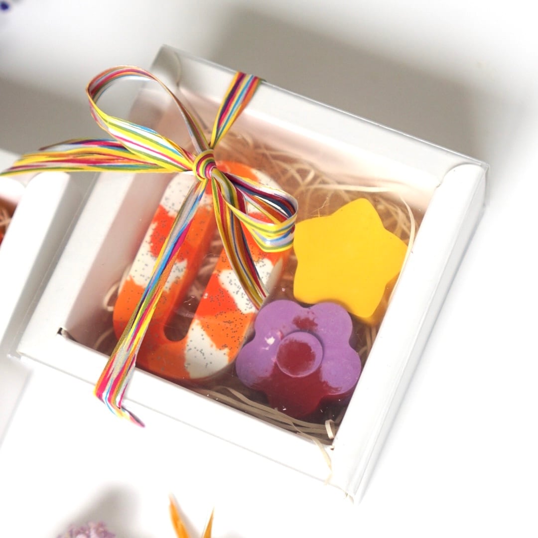 【プチギフト】選べるイニシャルとモチーフのくれよんセット